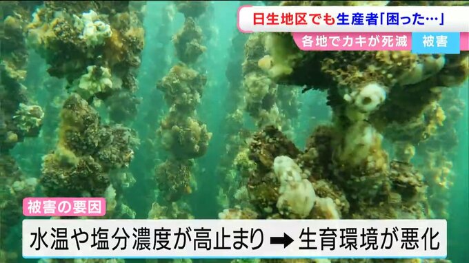 主な要因は、水温や塩分濃度の高止まり。夏の猛暑や、雨の少ない日が続いたことが、生育環境を悪化させたとみられています。