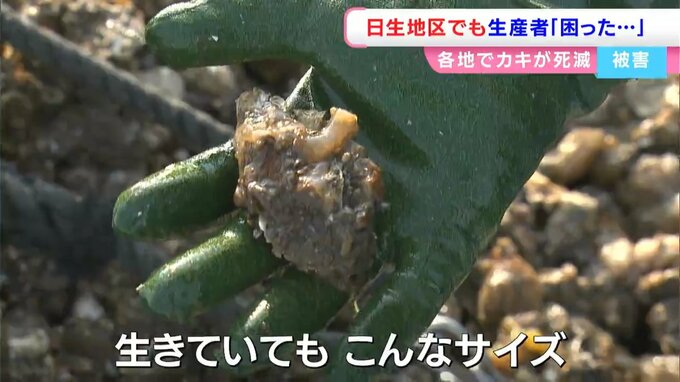 2年間養殖してから出荷するいわゆる「2年もの」は、ほとんどが死滅。「1年もの」は水揚げを例年から2週間遅らせたものの、身のサイズはかなり小ぶりになっているといいます。