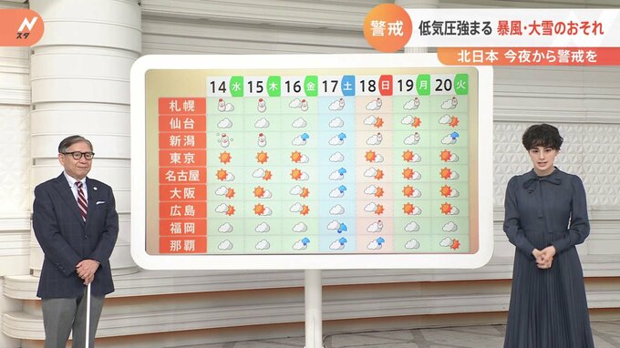 日本で一番有名な気圧配置になります。皆さんご存知ですよね。西高東低、西の方に高気圧、東に低気圧。これ時間進めてもほとんど変わらず、同じような気圧配置。このときには太平洋側は晴れ、日本海側は雪。本当に…