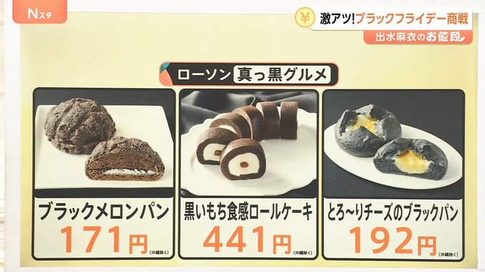 コンビニ各社では商品を黒くしており、たとえばローソンでは「ブラックメロンパン」(171円)や「黒いもち食感ロールケーキ」(441円)、「とろ~りチーズのブラックパン」(192円)を期間限定で売り出しています。(沖縄を除く)