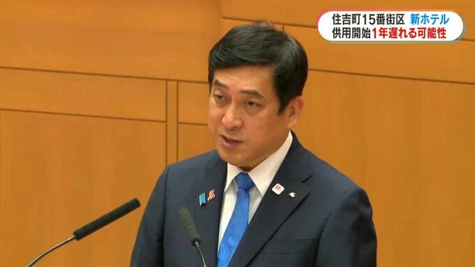 塩田知事は27日開会の鹿児島県議会で、住吉町15番街区の事業予定者となった鹿児島サンロイヤルホテルの運営会社・鹿児島国際観光から、事業計画を「1年後ろ倒ししたい」との申し入れがあったと明らかにしました。