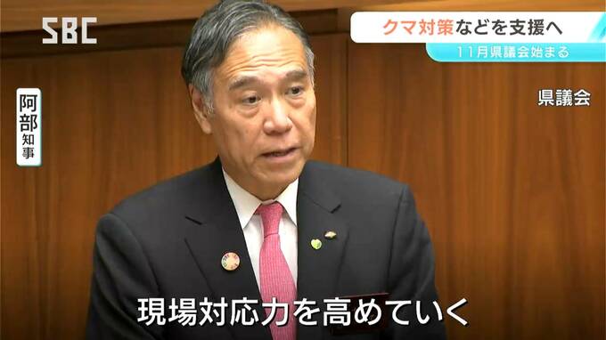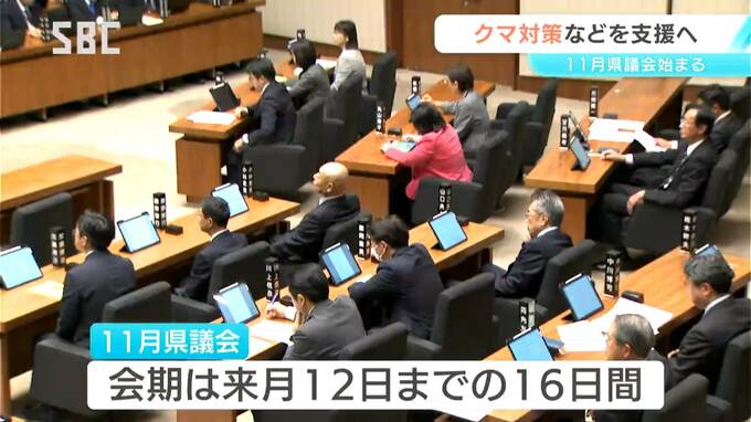 出没が相次ぐクマ対策などを盛り込んだ総額64億円余りの補正予算案を審議する11月県議会が開会しました。
