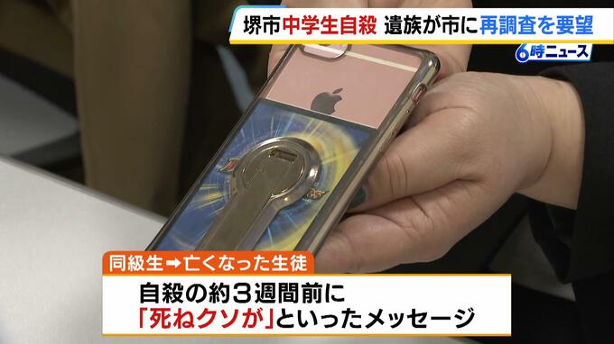 堺市の中学生がいじめを受け、その後自殺した問題。遺族が市に再調査を要望です。 堺市教育委員会などによりますと、2018年、堺市立中学の1年生だった女子中学生がいじめを受けて不登校になり、その後、自殺…