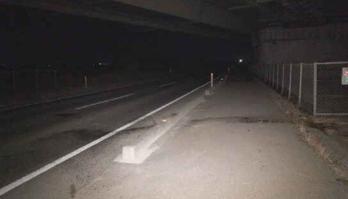 現場は緩やかなカーブで、警察が事故の詳しい状況を調べています。