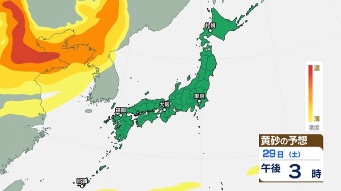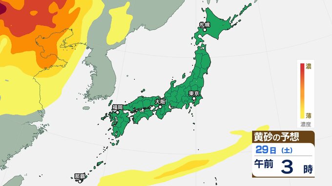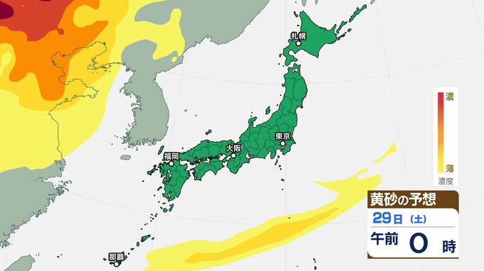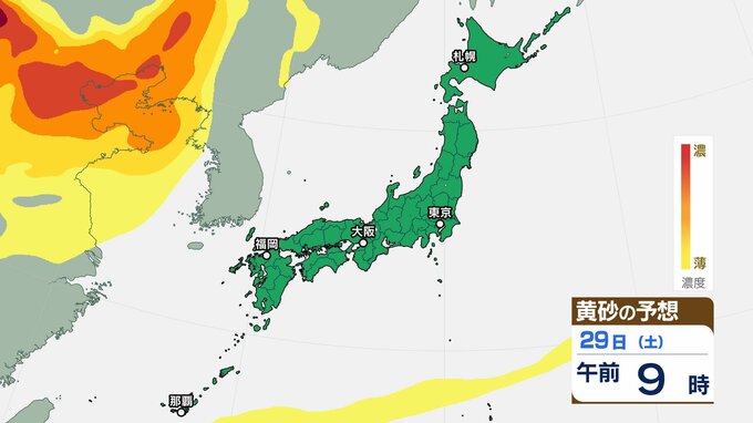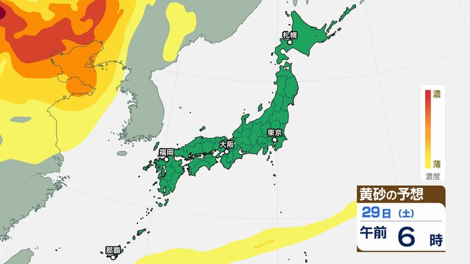 【黄砂情報】きょう(28日)日本列島に黄砂飛来の見込み 12月1日には広範囲にわたり飛来か 28日~12月1日にかけての黄砂シミュレーション【気象庁 28日午前8時更新】 RSK山陽放送 2025年11月28日(金) 08:16 国内 29日(土)の黄砂はどうなる? 29日(土)の黄砂のシミュレーションは、【画像⑦~】のとおりです。 【画像⑦】 【画像⑧】 【画像⑨】 【画像⑩】 【画像⑪】 【画像⑫】 【画像⑬】 【画像⑭】