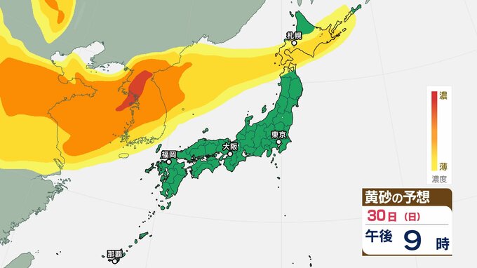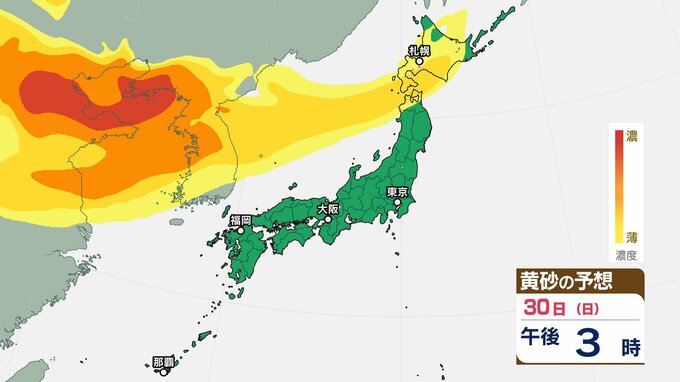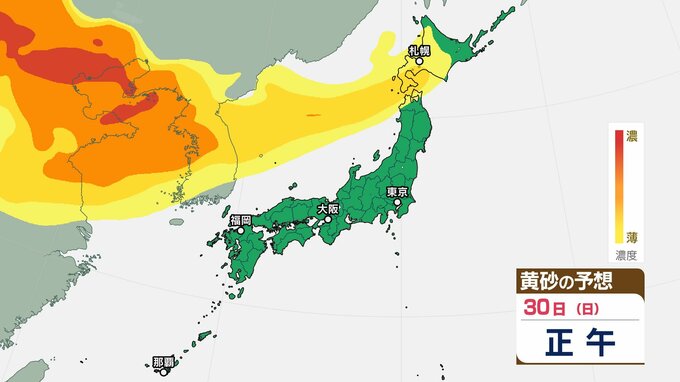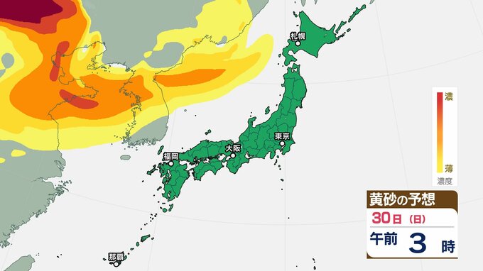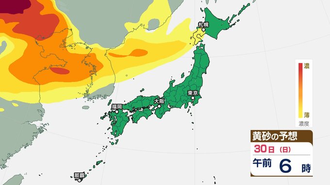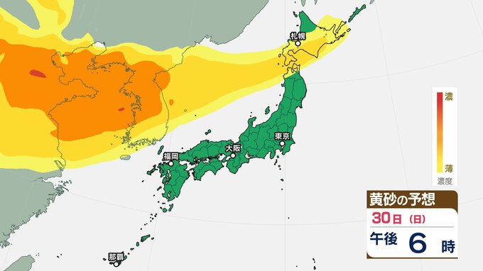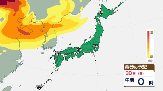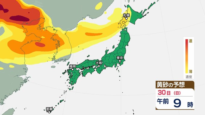 【黄砂情報】きょう(28日)日本列島に黄砂飛来の見込み 12月1日には広範囲にわたり飛来か 28日~12月1日にかけての黄砂シミュレーション【気象庁 28日午前8時更新】 RSK山陽放送 2025年11月28日(金) 08:16 国内 30日(日)の黄砂はどうなる? 30日(日)の黄砂のシミュレーションでは、【画像⑮~】のとおりです。 【画像⑮】 【画像⑯】 【画像⑰】 【画像⑱】 【画像⑲】 【画像⑳】 【画像㉑】 【画像㉒】