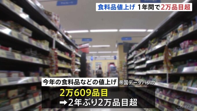 もうすぐ12月。2025年も食料品の値上げが相次ぎ、1年を通してあわせて2万品目を超えることがわかりました。帝国データバンクによりますと、今年の食料品などの値上げは合計で2万609品目と去年をおよそ65%上回りま…
