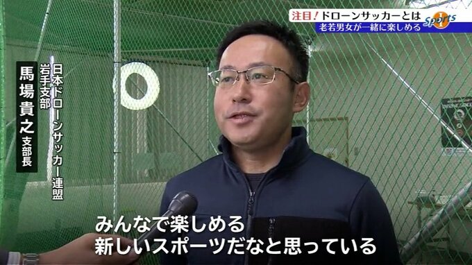 「こちらが最近開設されたドローンサッカーのコートだということなんですね。どんな場所なんでしょうか。こんにちは。よろしくお願いします」