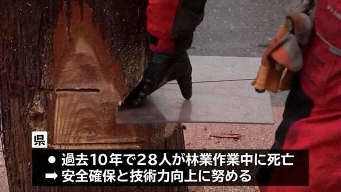 県内では過去10年で28人が林業の作業中に亡くなっていて、県は競技会や研修を通して安全の確保と技術力の向上に努めることにしています。