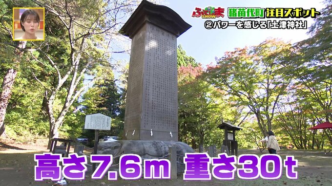 神社の境内には高さ7.6m、重さ30トンという日本一の石碑「土津霊神碑」があります。これには保科正之公の生涯と政治家としての功績が刻まれています。