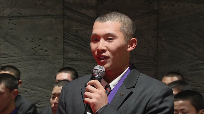 28日午前、北九州市役所を訪れたのは、九州国際大学付属高校野球部の選手・監督などおよそ30人です。
