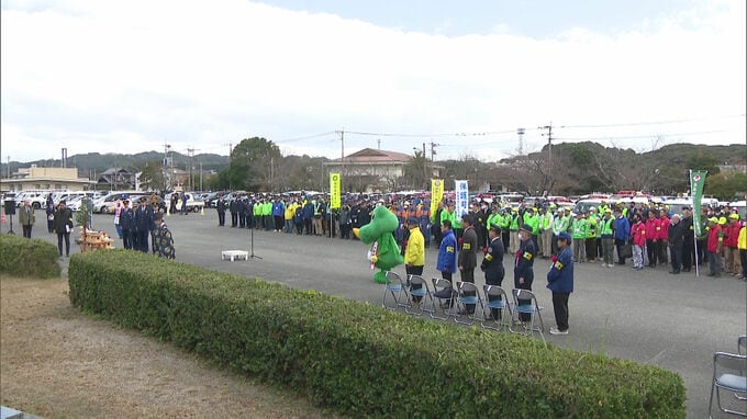 糸島市交流プラザで開かれた年末特別警戒の出発式には、警察や防犯団体などのおよそ240人が参加しました。