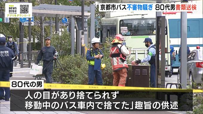 10月、京都市バスの車内で不審物が見つかった事件で、警察は80代の男を書類送検していたことがわかりました。 廃棄物処理法違反の疑いで書類送検された無職の80代の男は10月21日、京都市バスの車内に紙…