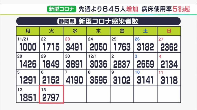 12月13日、静岡県内では新たに2797人が新型コロナウイルスに感染したことが分かりました。7人の死亡が報告されています。