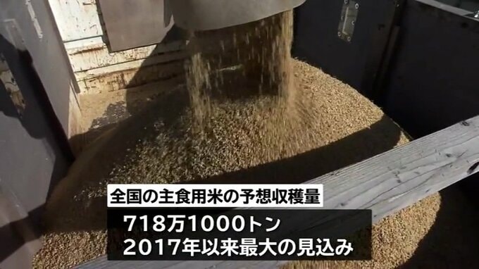 また、全国の主食用米の予想収穫量は718万1000トンで2017年以来最大の見込みです。