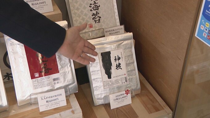「『神技』と名付けているが、白いラベルが有明産。黒いラベルが愛知県産として提供」