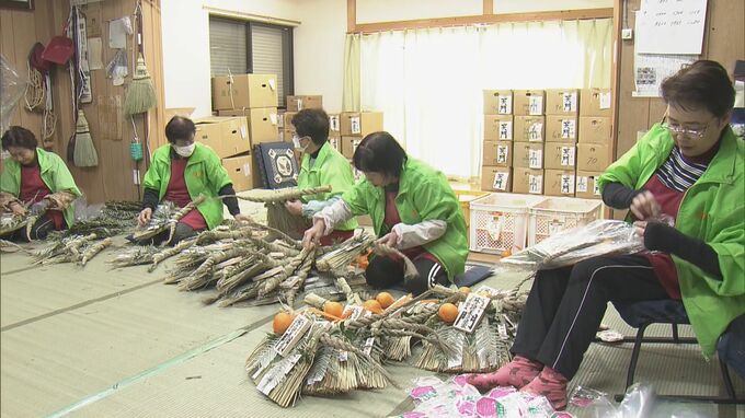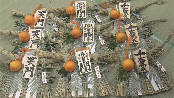 伊勢志摩地方では、しめ縄を1年にわたって飾る習慣があり、角谷産業では12月末までに約2万5000個作られ、地元のスーパーなどに出荷されます。