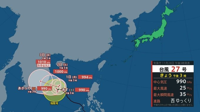 【台風情報】「台風第27号(コト)」実況・予報