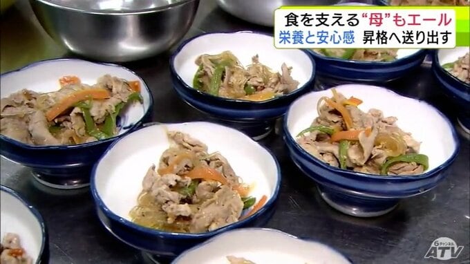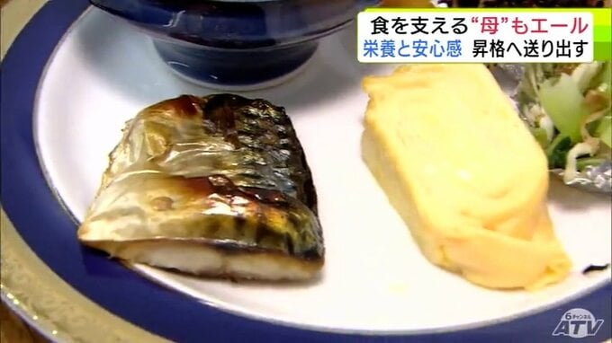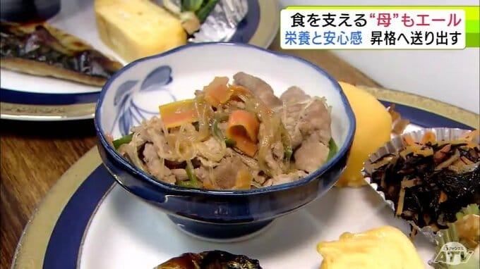この日のメニューは「チャプチェ」に「サバ焼き」それに大きな「卵焼き」です。練習を終え、おなかをすかせた選手たちは、この時間が何よりも楽しみです。