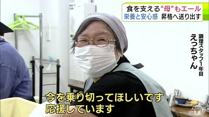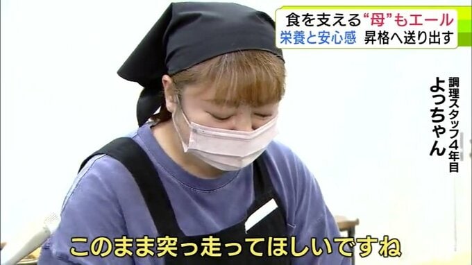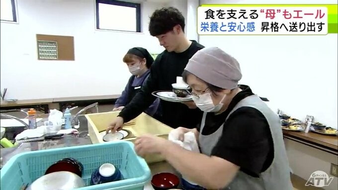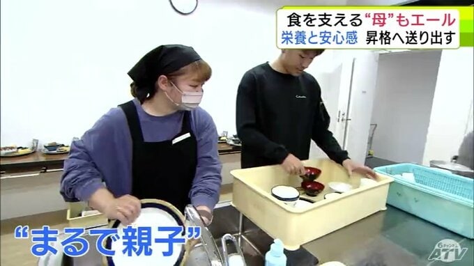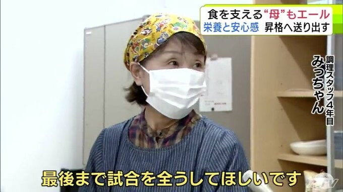 選手たちにとっては、サッカーから離れ、実家に帰ったような安心感があります。“母親と息子”まるで親子のような関係のなか、食事を終え練習へ戻る選手たちへ、いつも送り出す言葉があります。