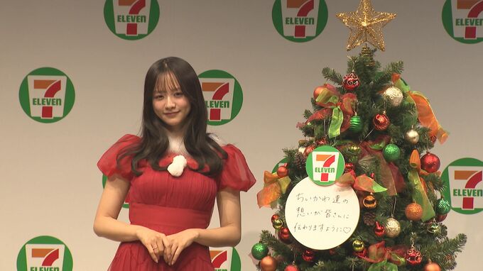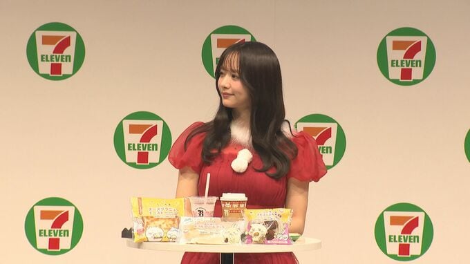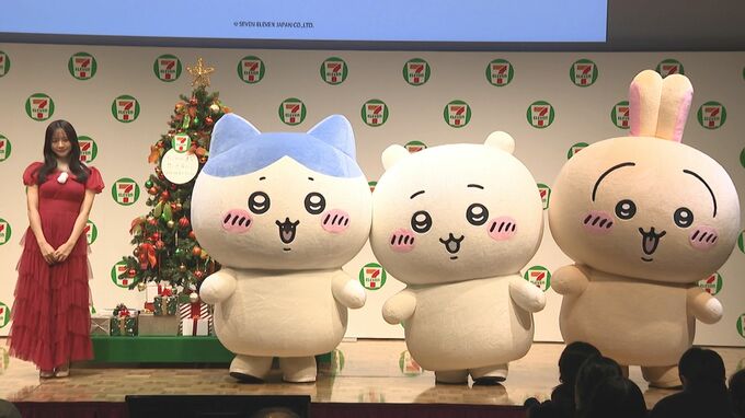 フリーアナウンサーの森香澄さんが、「ちいかわと冬をたのしんじゃお! セブン・イレブン×ちいかわ」PR発表会に登壇しました。この日は一足早くサンタクロース風の赤いドレス姿で登場しました。