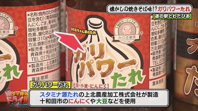 ”ガリパワーたれ”とは、”十和田ガーリックポーク”を生産する『みのる養豚』が企画し、”スタミナ源たれ”でおなじみの『上北農産加工株式会社』が製造した万能たれ。ニンニク、リンゴ、大豆、小麦など地元の食材を使っているそうです。お肉はもちろん、チャーハンやサラダなどの隠し味としてもおすすめなのだそう。