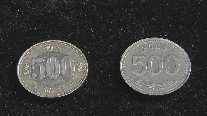 日本の500円と、韓国の500ウォン。一瞬で見分けるのが難しいほど、色も形もそっくりな2つの硬貨。しかし、500ウォンの価値は、日本円にして50円ほどです。