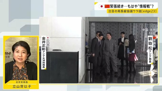 立山支局長は「局長レベルの会談が中国で、しかも速報で報じられることはほとんどないが、当日は国営メディアが速報で伝えていた」と指摘。また中国外務省の建物内は通常、記者やカメラは入れないが、直前になって「皆さん、中へどうぞ」と招き入れられたことから「メディアに撮らせようという意図は明らかだった」と分析する。
