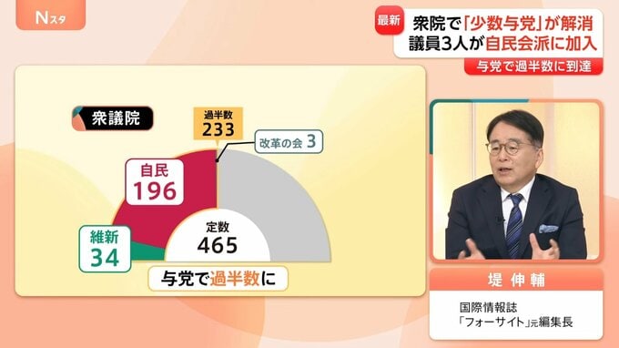 補正予算がこれから進みますが、少数与党だと予算案そのものが通らない可能性があったのが、今後は通りやすくなります。