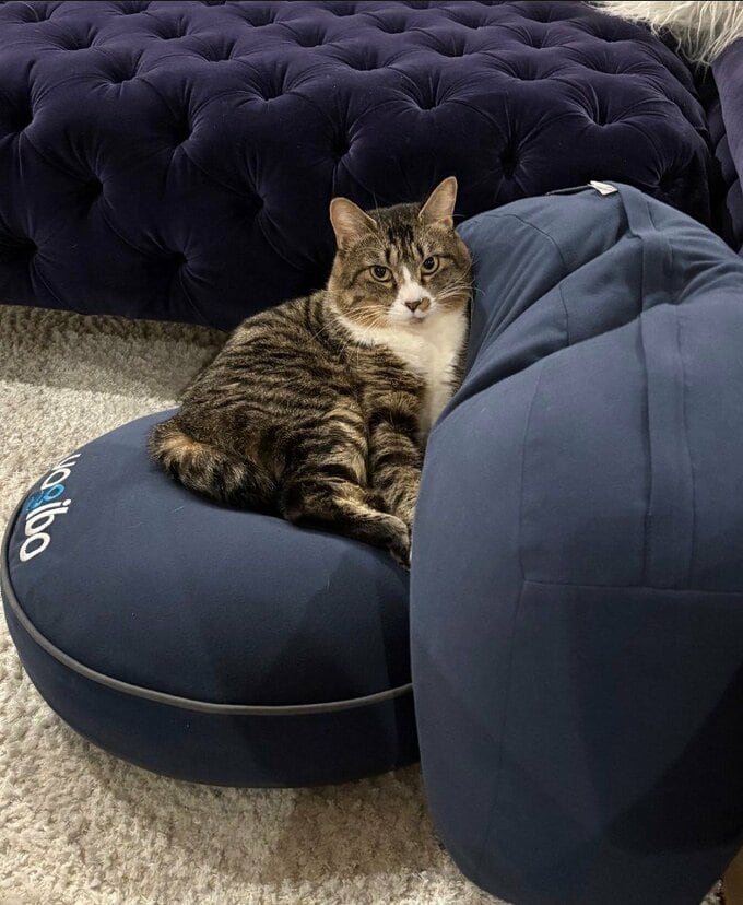 藤さんは「ついこの前までお外の世界しか知らなかったのに」「もうベテラン家猫感出まくってる」とテキスト。ちなみにこのクッションは、今月18日に藤さんが「私のYogiboを強奪するまでになったか」と投稿したものに酷似しています。