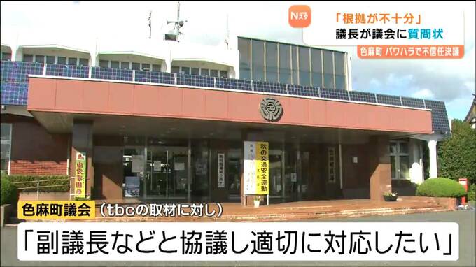 町議会はtbcの取材に対し「副議長などと協議し適切に対応したい」とコメントしています。