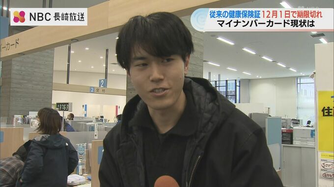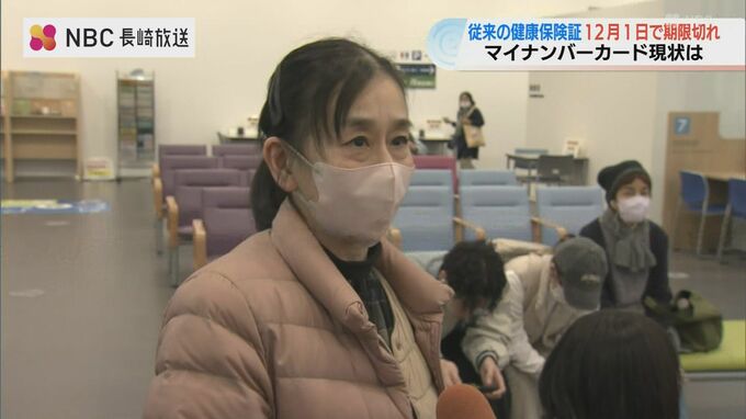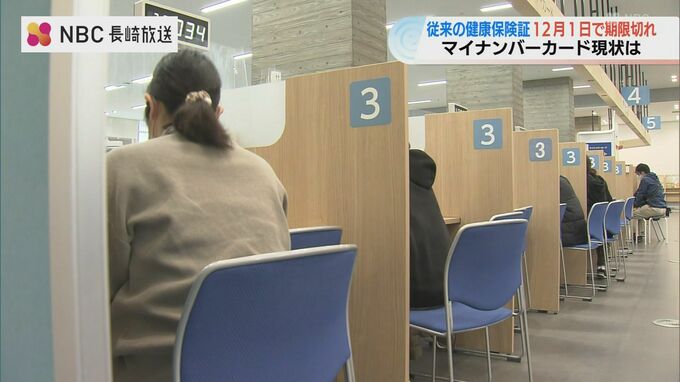 長崎市役所のマイナンバーカードに関わる手続きを行う窓口では、12月1日の期限を前に、マイナカードを作りに来た人や、マイナカードに保険証の機能を紐づけた「マイナ保険証」になっているか確認するため訪れた人もいました。