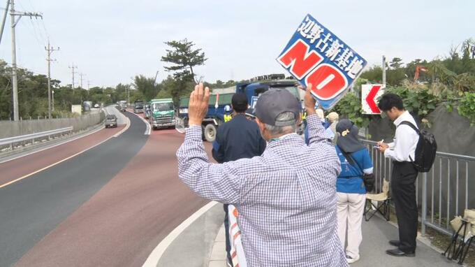 土砂が運搬されるキャンプ・シュワブのゲート前や大浦湾の海上では工事に反対する市民たちが抗議の声を上げました。