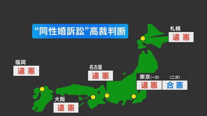 全国で6件争われている「同性婚裁判」。既に名古屋高裁を含む5つの高裁では同性婚を認めないのは「違憲」という判断を下していて、28日の合憲判決により、高裁の間でも判断が分かれる形になりました。