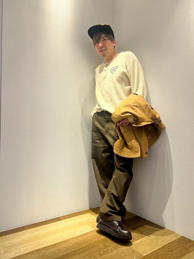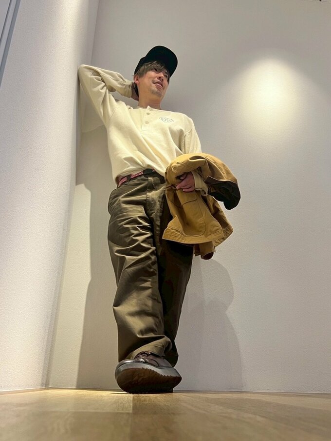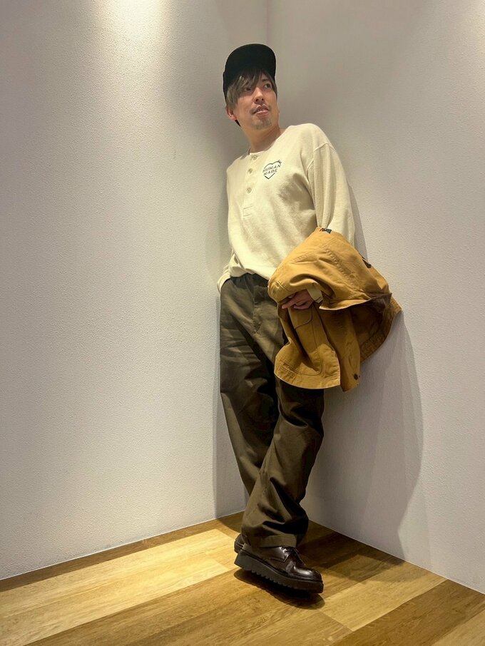 りんたろー。さんは、クリーム色のヘンリーネックのトップスにオリーブ色のチノパン、黒いキャップに革靴というベーシックなコーディネートに、キャメル色のジャケットを合わせたコーディネート。「何日かに一回やっぱり #アメカジ よなぁってなる日ってあるじゃないですか」「#ヘンリーネック が似合う #おじさん でありたいっていうか。」と自身のファッションへのこだわりについて語っています。