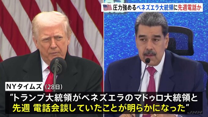 アメリカのニューヨーク・タイムズは28日、トランプ大統領がベネズエラのマドゥロ大統領と先週、電話で会談していたことが明らかになったと伝えました。事情を知る複数の関係者の話だとしていて、アメリカで対面で…