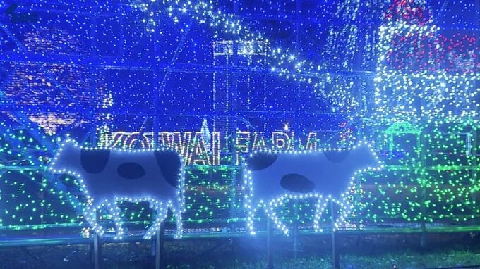 小岩井農場のイルミネーション「銀河農場の夜」は冬の牧場を楽しんでもらおうと2013年から始まったイベントで、今年で12回目を数えます。今年は9月初旬から農場スタッフが作業を進め、前回より10万球多い70万球のLEDを使用したということです。