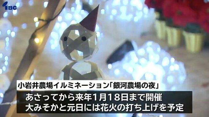 冬恒例、小岩井農場のイルミネーションが12月1日に始まるのを前に28日夜、内覧会が開かれ新しいオブジェも公開されました。