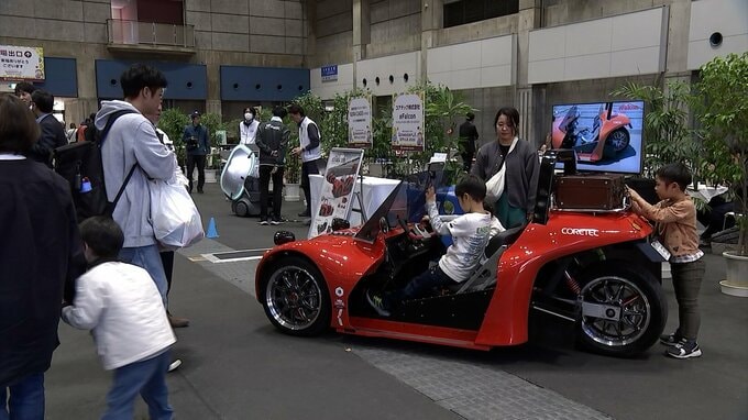 会場では子どもたちによるエンジニア体験や、自分で色を塗ったオリジナルの車をバーチャル空間で走らせるチャレンジなども行われ、多くの人で賑わっています。