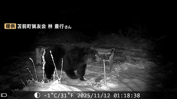また、この場所では、約2週間前の11月11日から12日にかけて、巨大なヒグマが箱わなを押し倒すようすがカメラに捉えられていました。