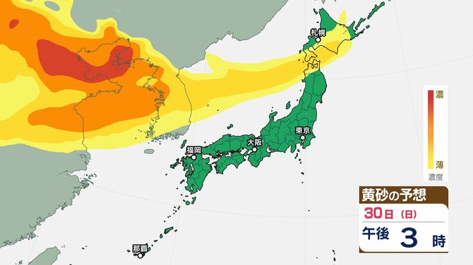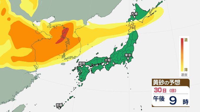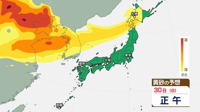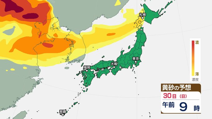 【黄砂情報】12月1日~2日にかけて日本列島に広範囲にわたり飛来か 30日~12月3日にかけての黄砂シミュレーション【気象庁 30日更新】 RSK山陽放送 2025年11月30日(日) 08:37 国内 30日(日)の黄砂はどうなる? 30日(日)の黄砂のシミュレーションは、【画像②~】のとおりです。 【画像②】 【画像③】 【画像④】 【画像⑤】 【画像⑥】