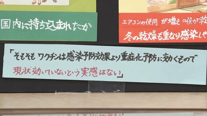 気になるのはワクチンの効果ですが、実際に診察を行っている伊藤院長は「そもそもワクチンは感染予防効果より重症化予防に効くもので、現状、効いていないという実感はない」と指摘しています。「ワクチンの効果は保たれているのでは」と述べ、ワクチンの接種を奨励しています。