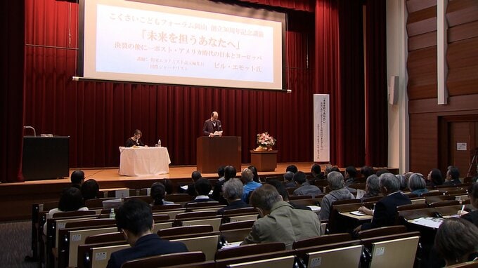 岡山市のNPO団体「こくさいこどもフォーラム岡山」は国際社会で活躍する人材を育てようと中・高校生を対象にした講義を年に20回程行っています。講演ではイギリスの国際ジャーナリストのビル・エモットさんが「今後は、東南アジアの国や地域との連携が鍵になる」とグローバルな視野を持つことの大切さを訴えました。