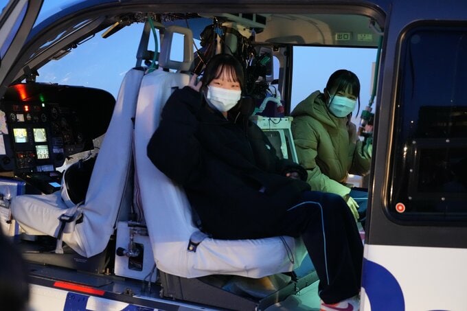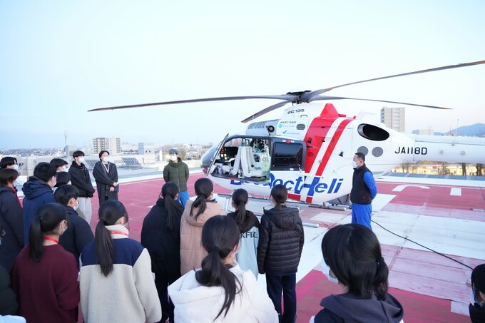 このセミナーで中学生たちが一番テンションを上げていたのは、ドクターヘリを間近に見た瞬間でした。