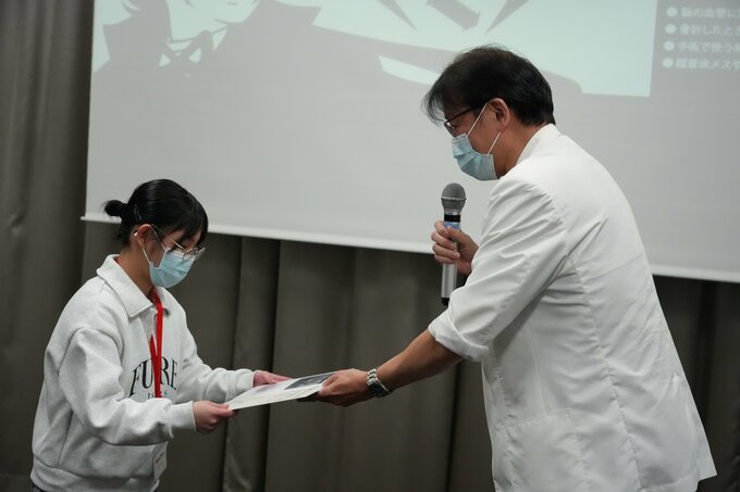 終了の証として、中学生たちには「未来の医師認定証」が手渡されました。
