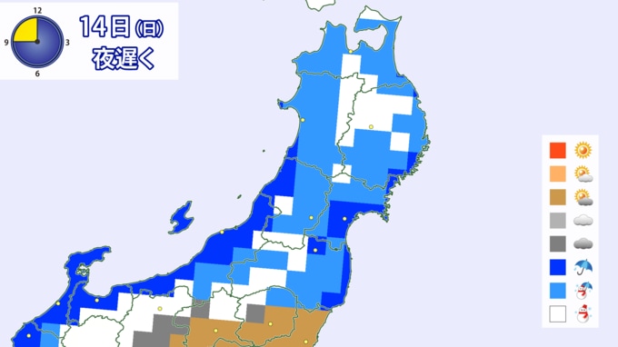 【13日(土)夜~14日(日)朝の天気】関東・中部・東海地方