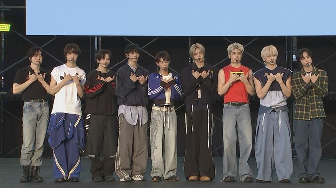 日韓ダブルミリオンを達成したのは、日本アーティスト史上初の快挙ということで、FUMAさんは“まずは応援してくださったLUNÉ(ルネ・ファンネーム)の皆さんに感謝を伝えたい。ここまでの3年間、決して順風満帆な僕たちの物語ではなかった。色々なことがあった中で、LUNÉの皆さんが応援してくださったおかげ。こうして9人揃って、改めて伝える場所がなかったので、本当にLUNÉの皆さんありがとうございます”と、開口一番にファンへの感謝を述べました。