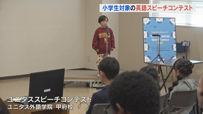 小学生を対象にした英語のスピーチコンテストが、山梨県甲府市で開かれました。