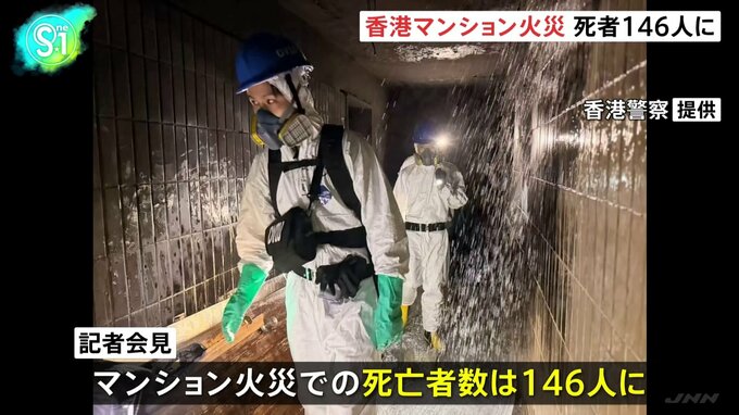 香港で発生したマンション火災。警察などはきのう、死者数が146人に増えたと発表しました。きのう午後6時から行われた警察などによる記者会見。先月26日に発生したマンション火災での死亡者数が146人になったこと…