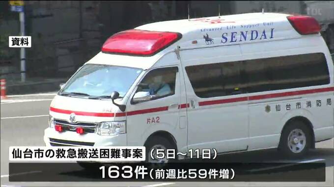 新型コロナの感染者が増加する中、仙台市では、救急患者の搬送先がすぐに決まらない救急搬送困難事案は、11日までの1週間で▼163件あり過去2番目に多い件数となりました。仙台市消防局によりますと、11日までの1週…